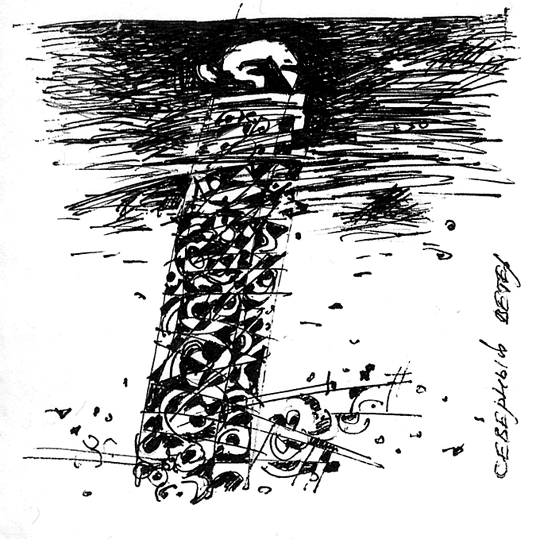 simplified forms – bearded men, women, centaurs, creatures with wings, as well as birds and fish … The eccentric figures are static images, and their condition and mood is determined by the gesture, posture, the turning of the head (“Bathing in the hole”, “Rubicon”).