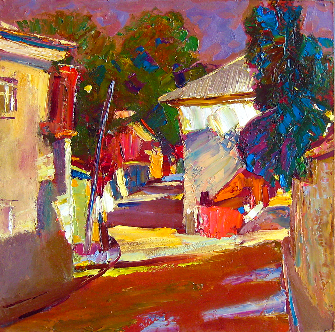 A colorful symphony is a rare phenomenon in modern visual art. Most artists are content to create beautiful melodies and do not try to develop an already good color theme to the scale of an artistic visual symphony. The solution of this type of problem requires a special kind of talent, and a tremendous amount of work. Add to that a high level of artistic cultural, a quality that at present is quite exotic. Nevertheless, interest towards this form of color constructions never dies out. Symphonic understanding of the color harmony is clearly witnessed in many works of the artist Yuri Platonov. Platonov’s scenes are quite traditional, but much less traditional are their color constructions. Let us dwell a little more on this feature of the paintings.
