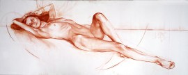 • Series “The Silence” (1999) – is one of the first made by the author in the technique of etching. In this series, which is mysterious and surprisingly melodic in a youthful way, the third sheet is of particular interest. On a gloomy background of deep space there are nude, separately seated figures of a man and a woman with a baby sleeping peacefully in their arms. Immersed, each in their own world, both he and she are alone. Above them, in the upper world, submitting to their own music, unseen creatures fly on a predetermined path, and in the lower world, listening to the melody, wonderful fish swim by. He and she are in an infinite space, where everything is on a predetermined path. The juxtaposition, in which a