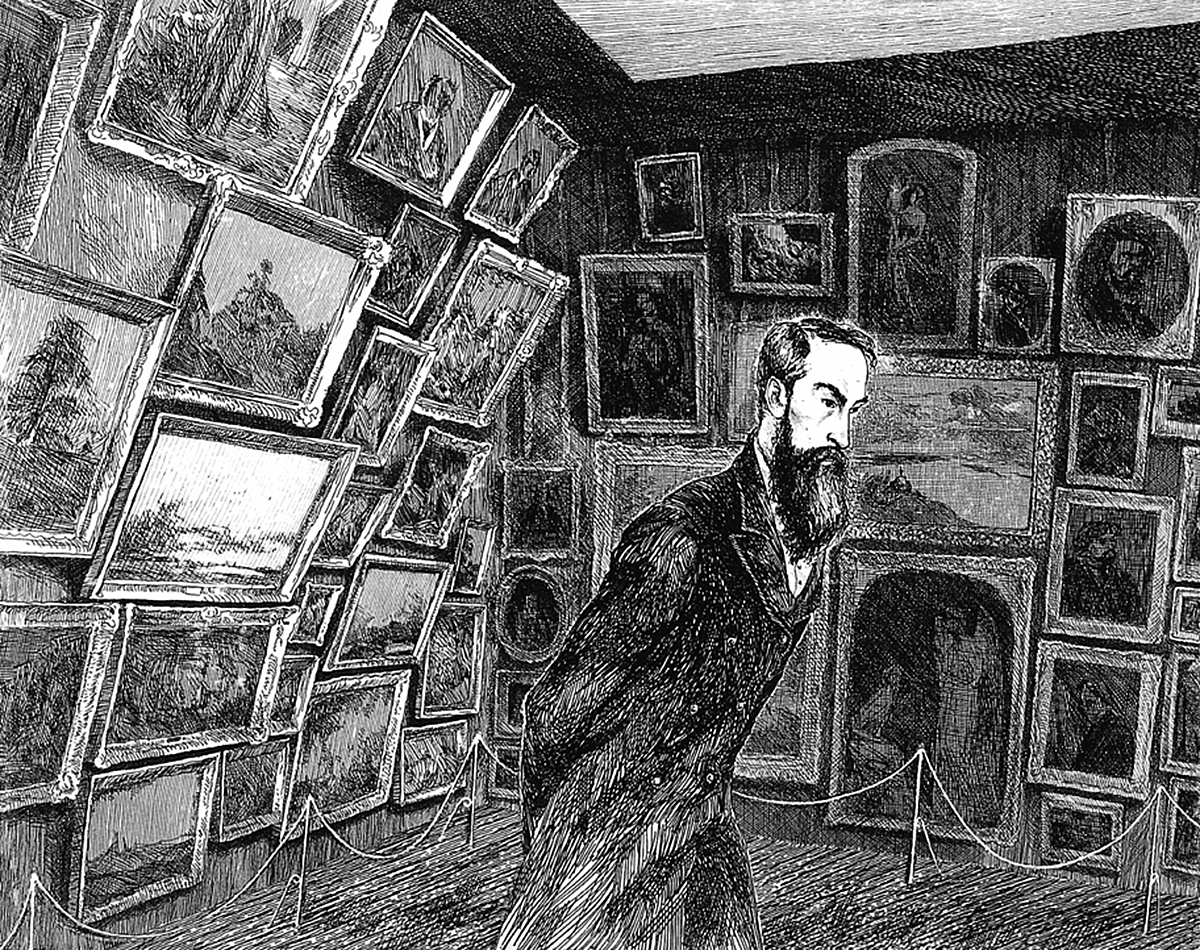 • The organization of art-pictorial space almost certainly contains an element of mysterious theatricality. Being fluent in the art of composition, having almost “perfect pitch” to the tonal nuances of color, the artist multiplied the possibilities of his talent. As a result – the solid correctness of creative interpretations and borrowing, intended to convince the audience of the need for a grateful modern look upon the classics, and perhaps to intensify the interest of a contemporary viewer to the values of the past.